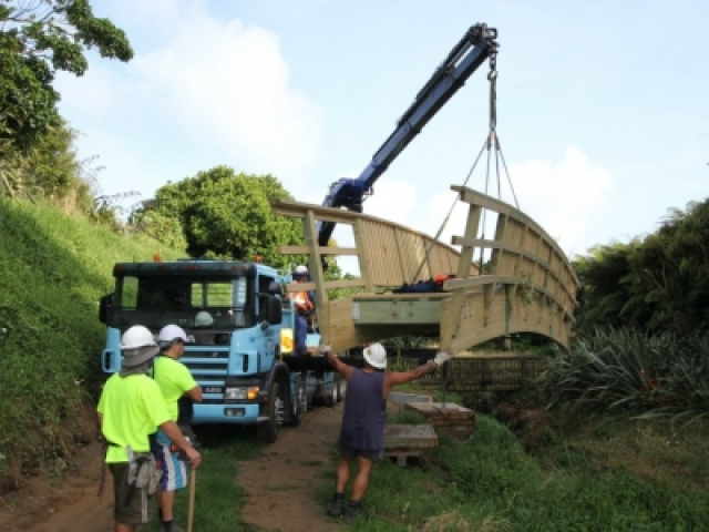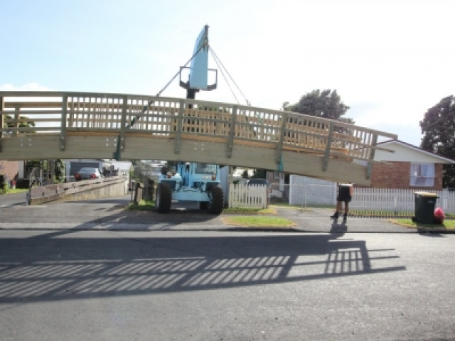 Custom Constructions' innovative approach was to construct this bridge off site and transport to site for minimal disruption and to minimise health & safety to the public.